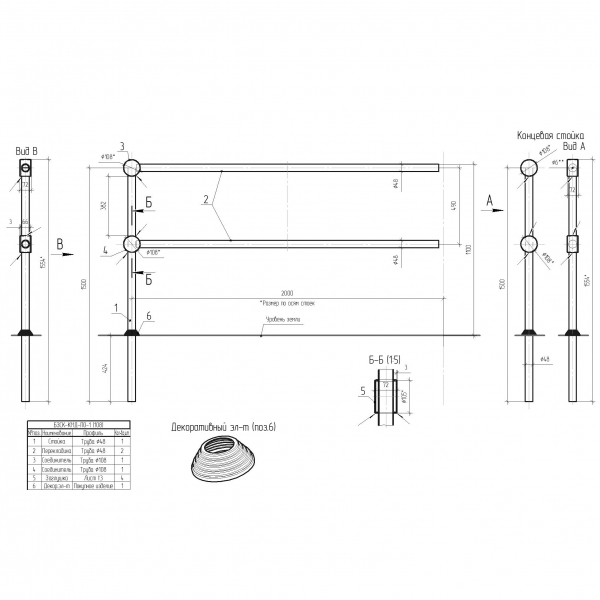 Устанавливается перильное ограждение путем бетонирования каждой ножки, которые будут выведены в нижней части изделия.